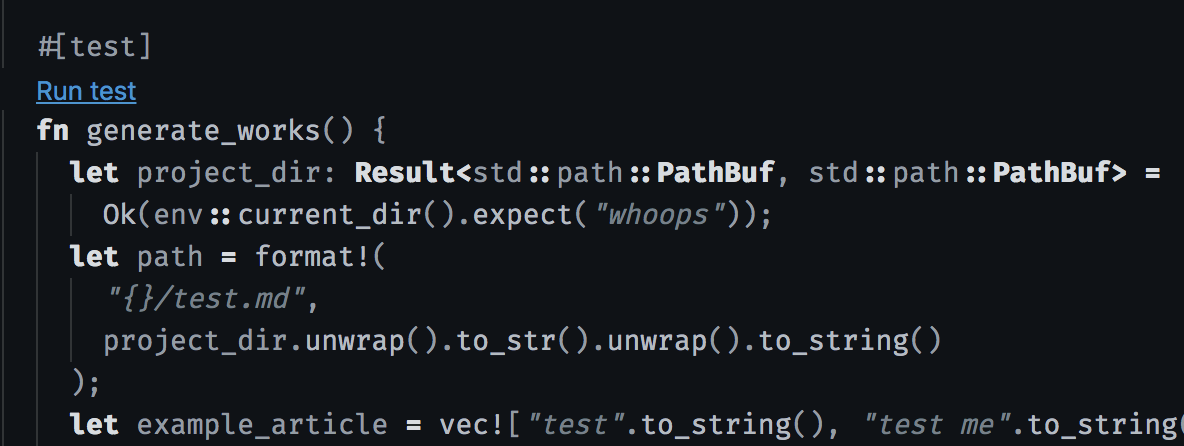 You see, in something that has taken a bit of getting used to, unit tests are kept in the same file as the source code in Rust. I guess scrolling isn't considered a DX downside in systems programming π